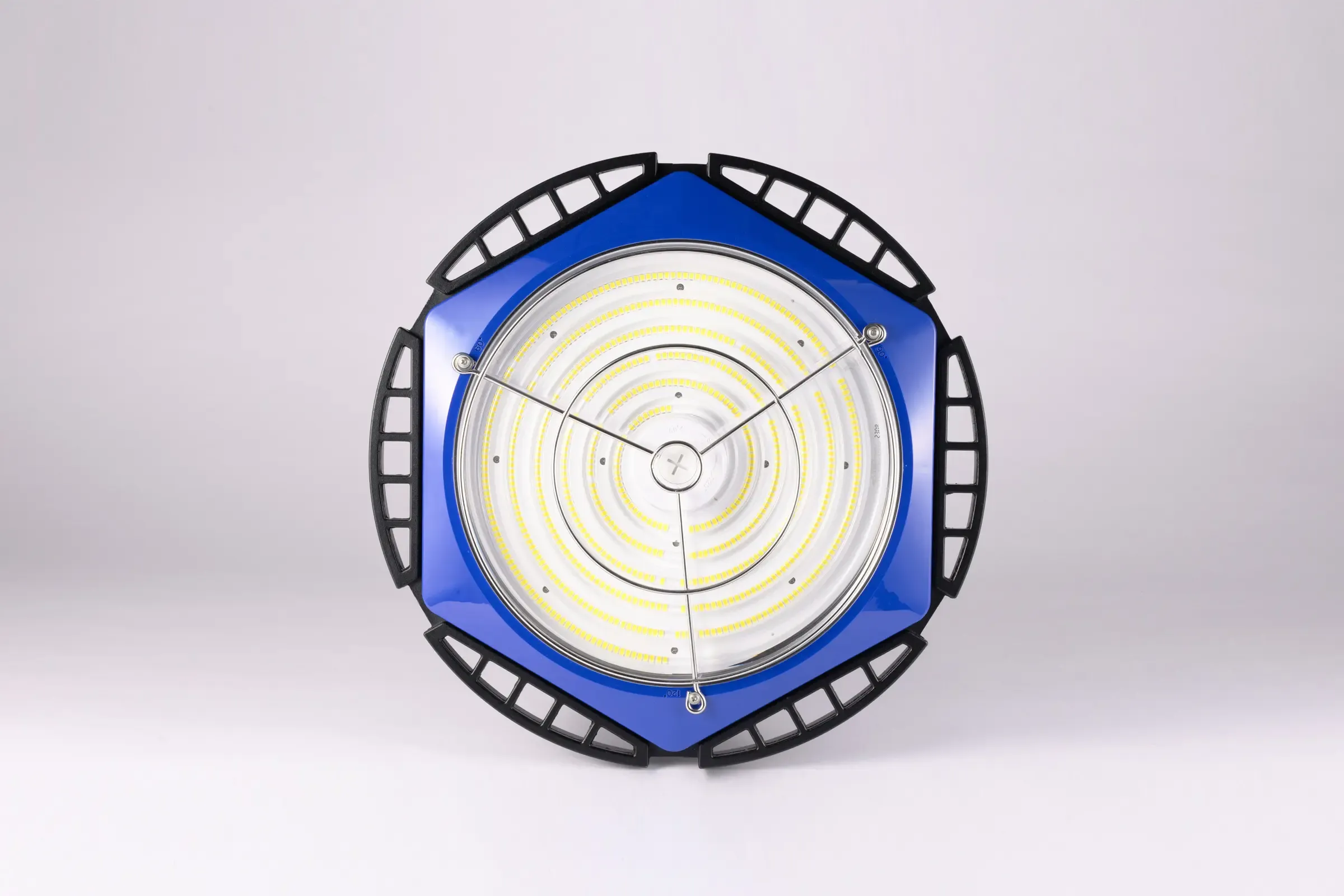 特殊構造レンズの調整により、60°・90°・120°の3段階で照射角度を切り替え可能。設置場所や用途に応じて最適な配光を選べるため、倉庫・工場・屋外ヤードなど幅広い現場に対応します。